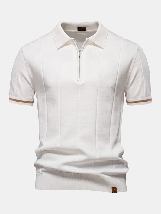 Mitchell - Contrast Trim Zipper Knit Polo Shirt