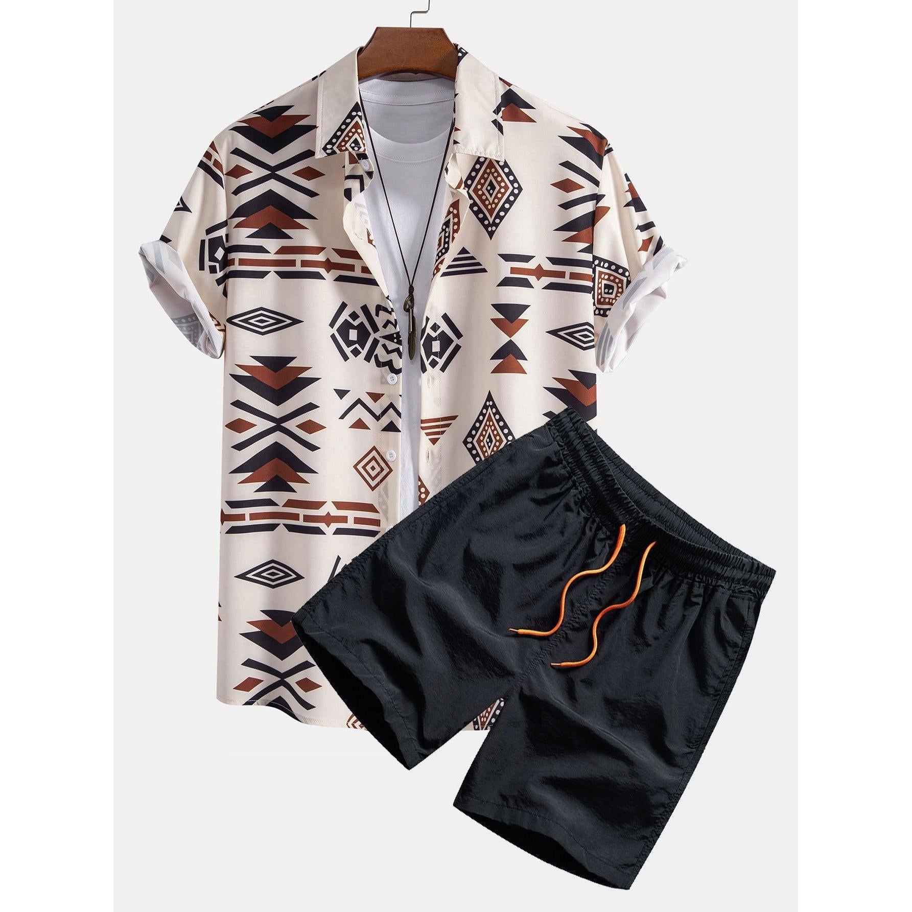 Scott - Aztec Geometric Print Shirt & Swim Shorts